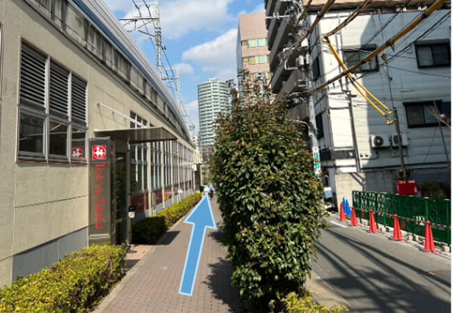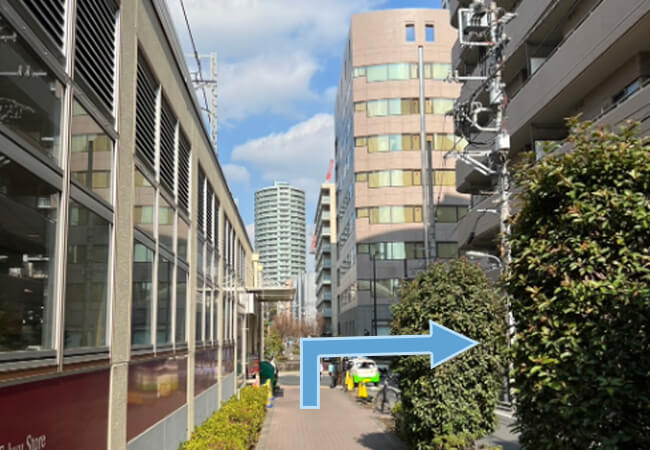 「東急ストア 不動前店」を通りすぎたら、交差点を右に進みます。